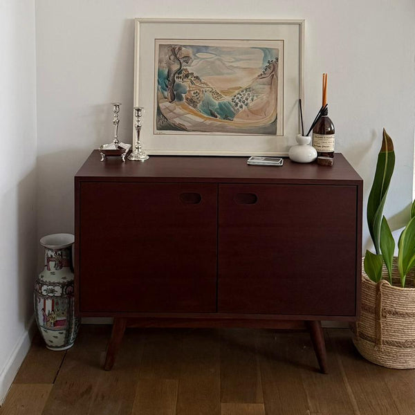 היא היסטרית והיא מעוצבת רטרו, אבל מציעה גם חום כפרי שנובע מחומרים טבעיים וקווים מעוגלים. השידה הזאת עשויה עץ תעשייתי מחופה פורניר איכותי צבוע ומשוך בלכה ומצוידת בזוג דלתות שמסתירות מאחוריהן חלל אחסון פונקציונלי, ונפתחות באמצעות ידיות אינטגרליות מעוצבות להפליא.