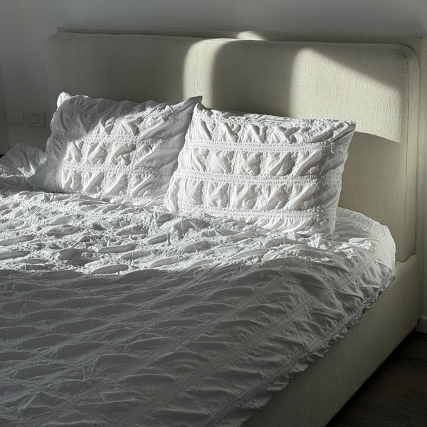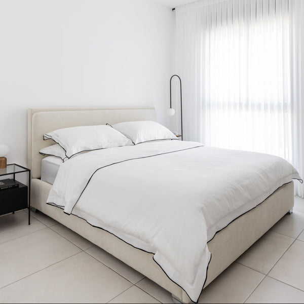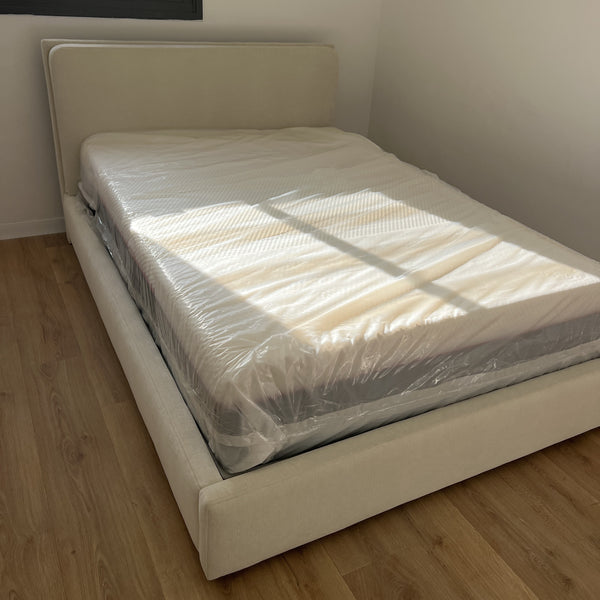 מיטה מעוצבת בבד אריג בהיר