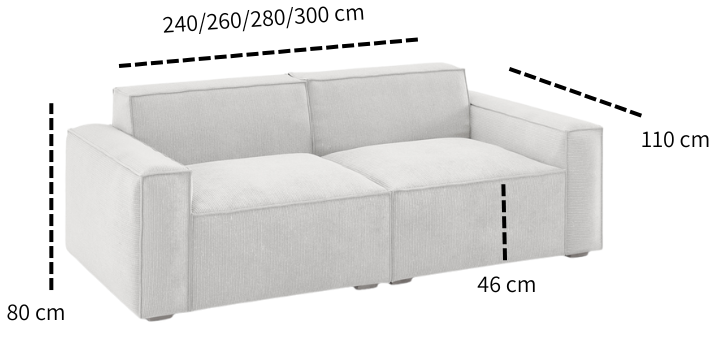 ספת שזלונג מרופדת בבד קורדרוי, 290 ס"מ