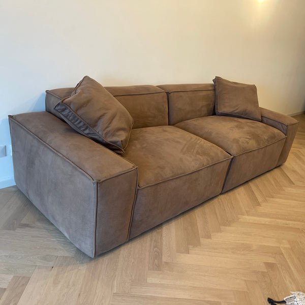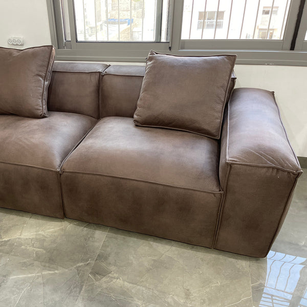 ספה מודרנית בבד קטיפה בגוון שוקולד ברוחב 213 ס"מ