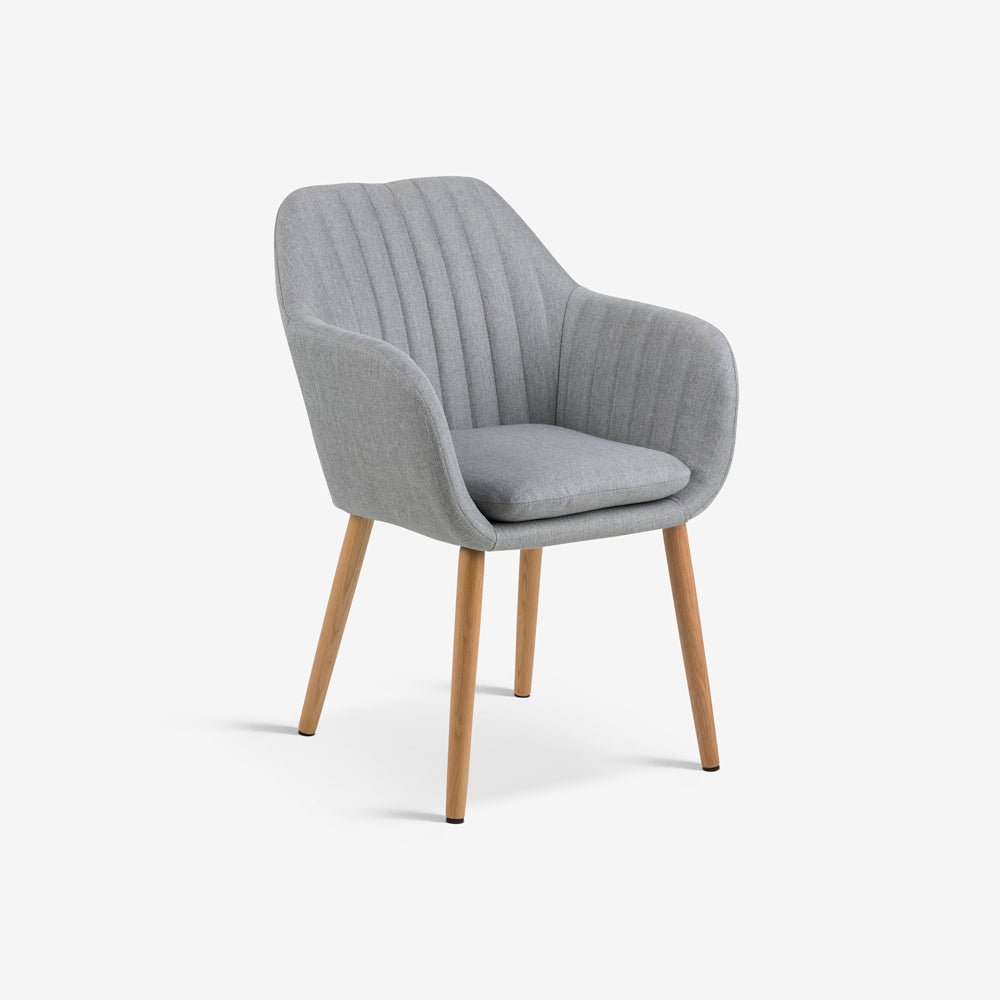 כיסא נורדי מעץ עם מושב מרופד בבד בוקלה
