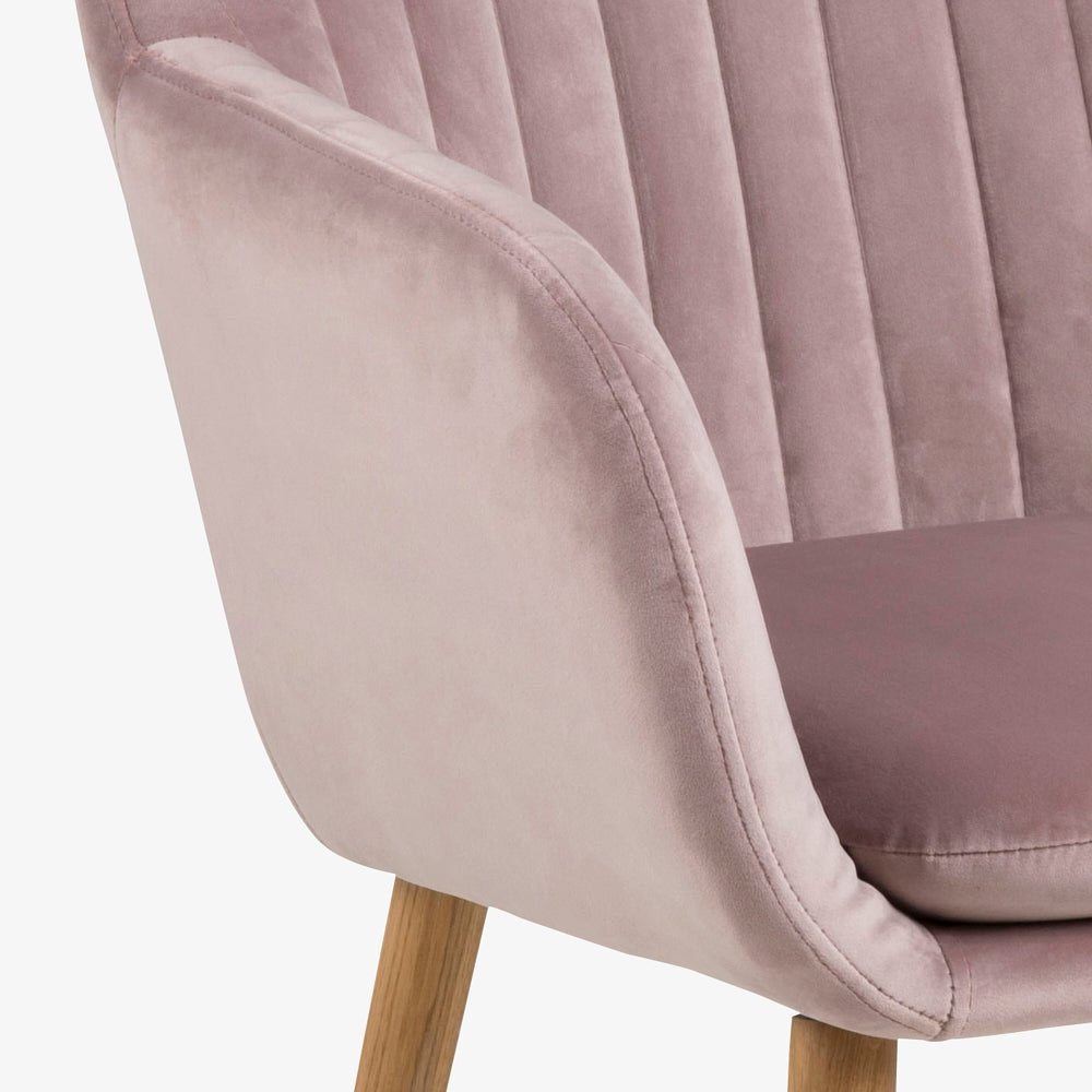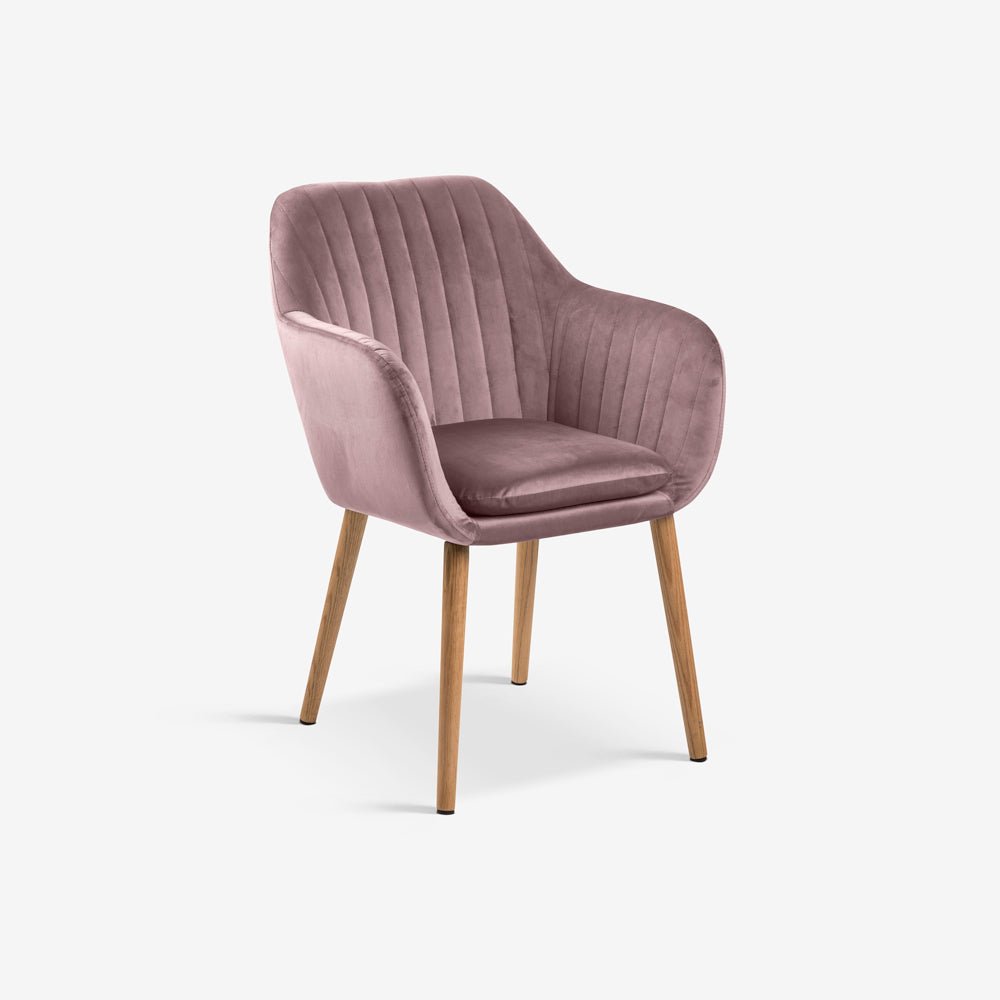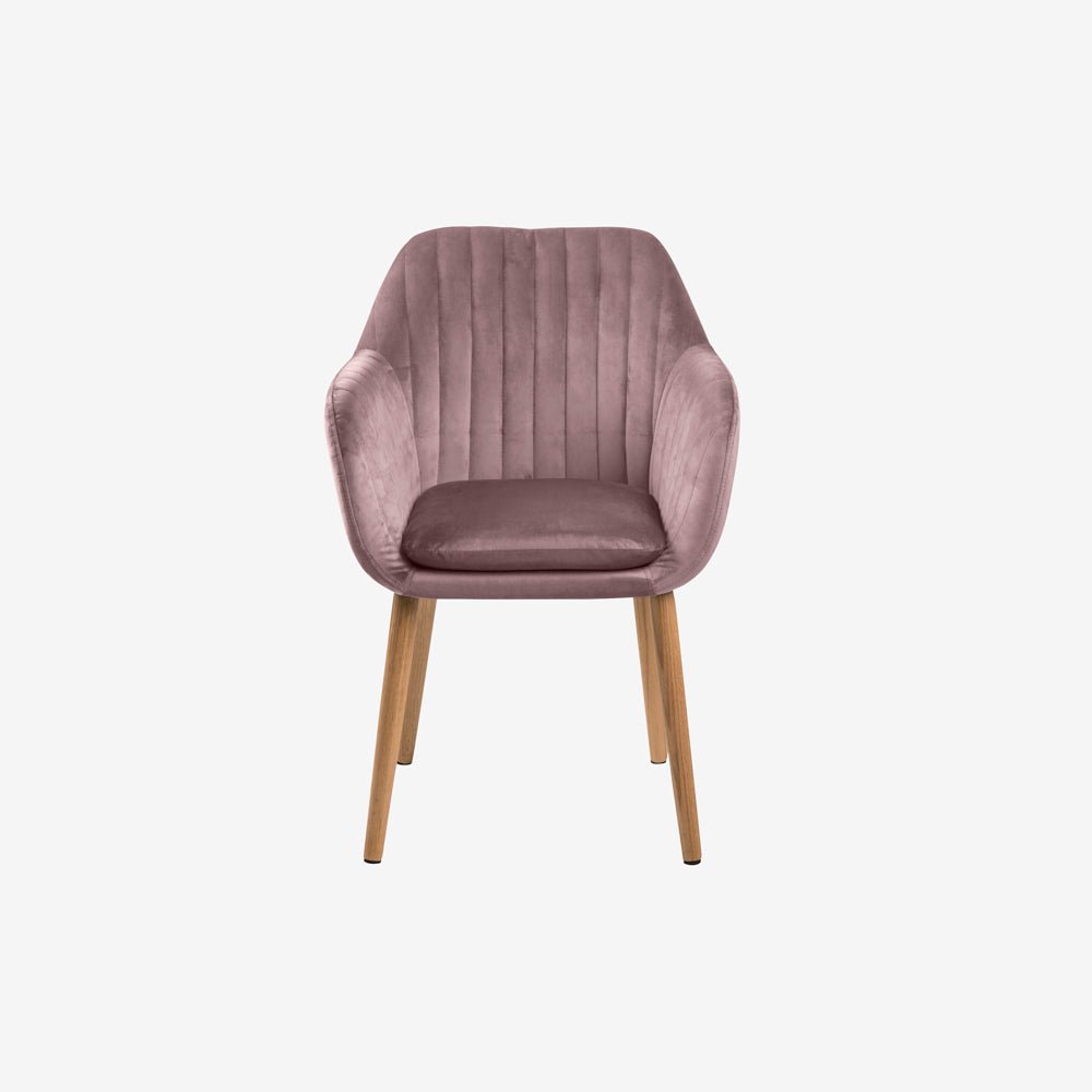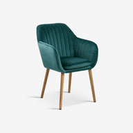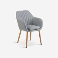 כיסא אוכל מעוגל מעץ אלון מלא בשילוב בד אריג