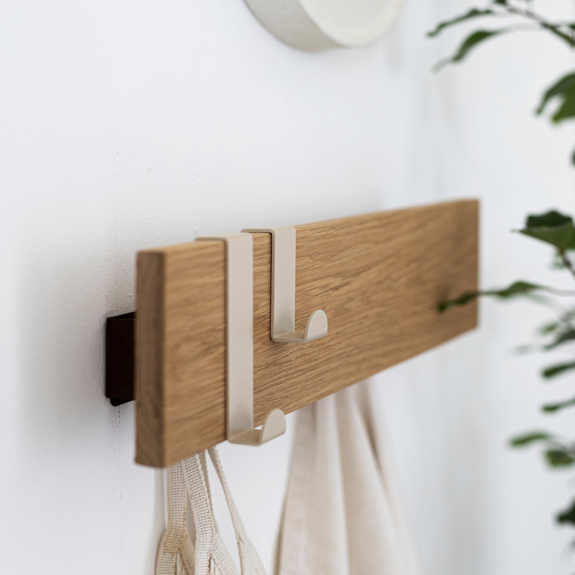 BRUMA הוא מתלה קיר מינימליסטי בעיצוב נקי ומדויק, המשלב חזית עץ אלון טבעי עם גוף מתכת בגימור איכותי. המתלה כולל תושבת אחורית נוחה לתלייה פשוטה על הקיר, 7 מתלים נסתרים ושניים קדמיים בגוון חול. מתאים לכניסה לבית, למסדרון או לכל חלל שדורש פתרון תלייה מעוצב – לתיקים, מעילים או אביזרים יומיומיים. פריט שמשלב שימושיות עם נראות אסתטית מדויקת – מושלם למי שמחפש תוספת קטנה עם נוכחות.