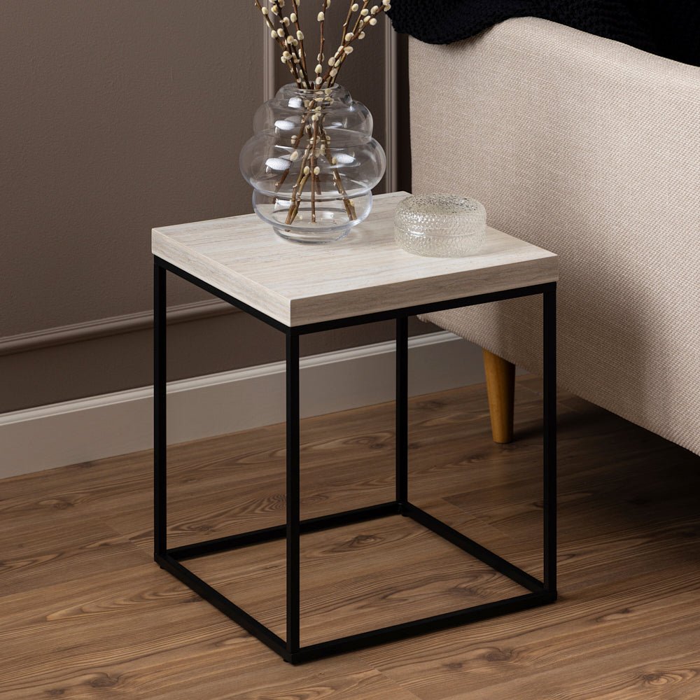 שולחן צד ריבועי ממלמין ומתכת, 45/45 ס"מ