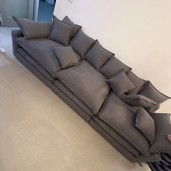 ספת שזלונג מודולרי מרופדת בבד אריג, רוחב 219 ס"מ