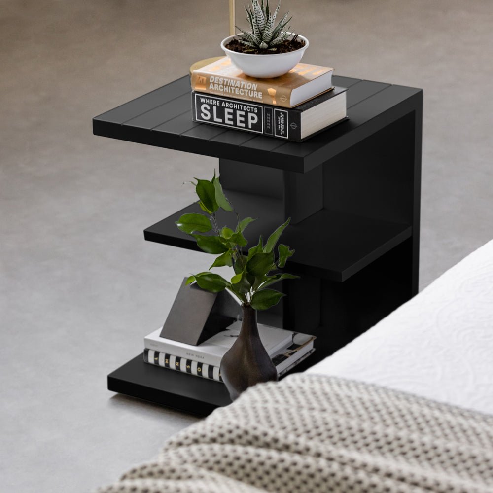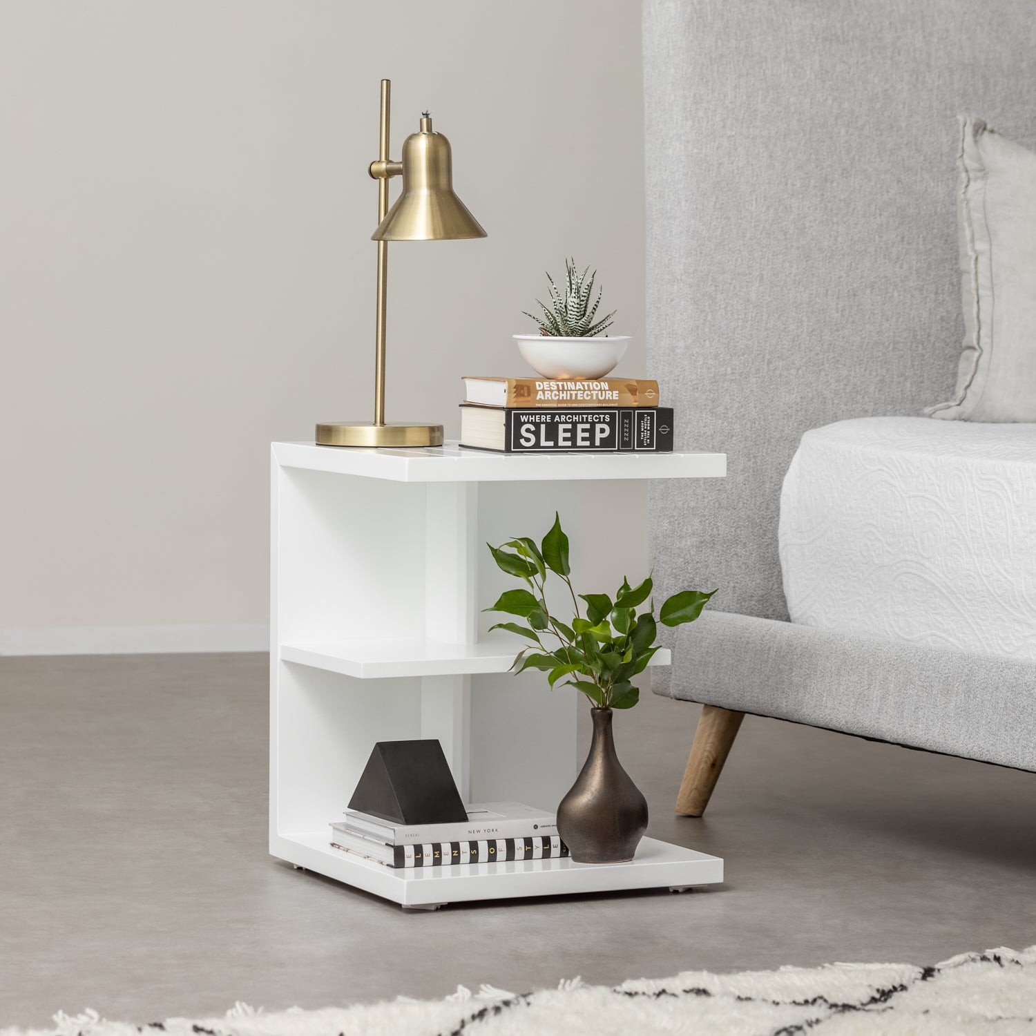 שידת לילה מעץ 40/40 ס"מ, עם מדפים פתוחים