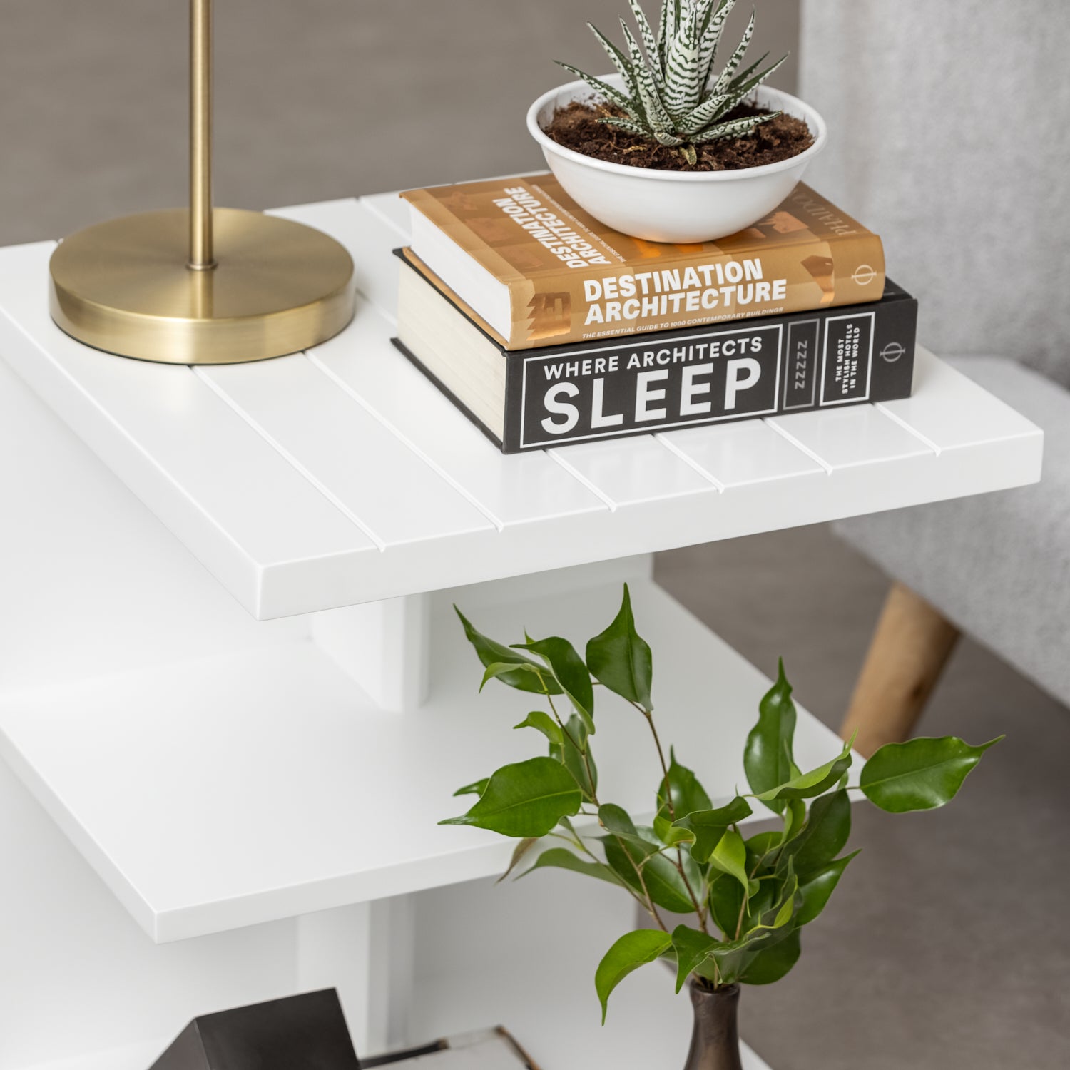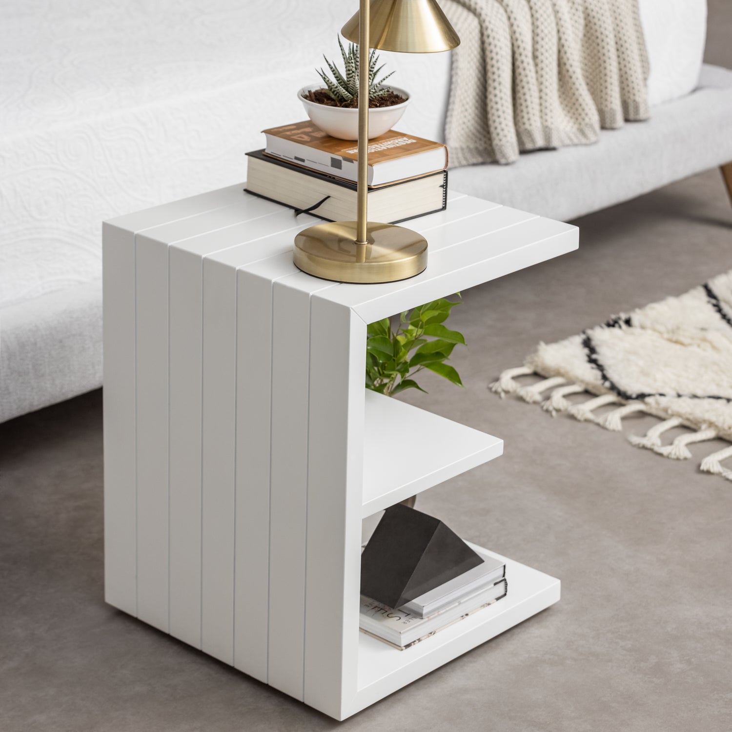 שולחן צד ריבועי ממתכת, 35/35 ס"מ, עם מדף פתוח