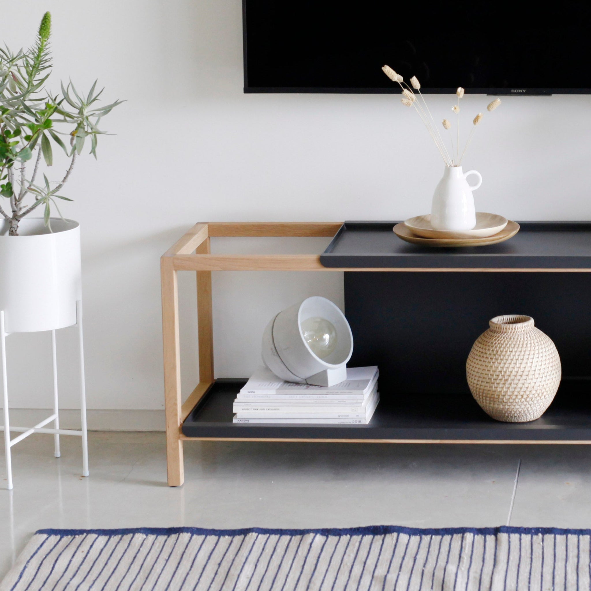 מזנון ELUNA הוא פריט עיצוב עכשווי שמשלב פרופיל עץ אלון מלא בגימור טבעי עם מדפי אלומיניום בגימור מט – בעבודת מתכת מוקפדת בעובי 2 מ"מ ובגימור אלקטרוסטטי חלק. הקווים הנקיים, החומריות האיכותית והמבנה האוורירי יוצרים מראה מינימליסטי שמכניס שקט לחלל המגורים.