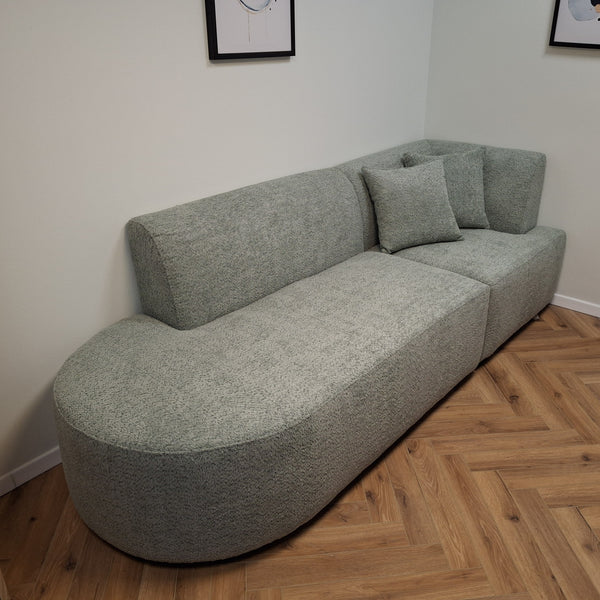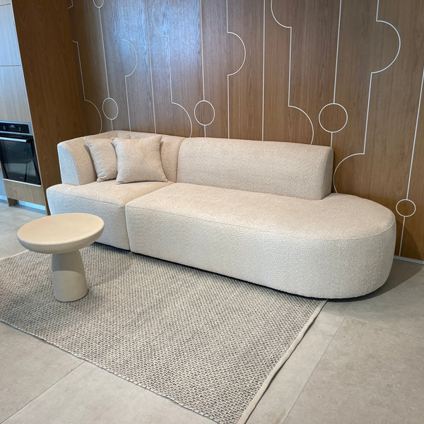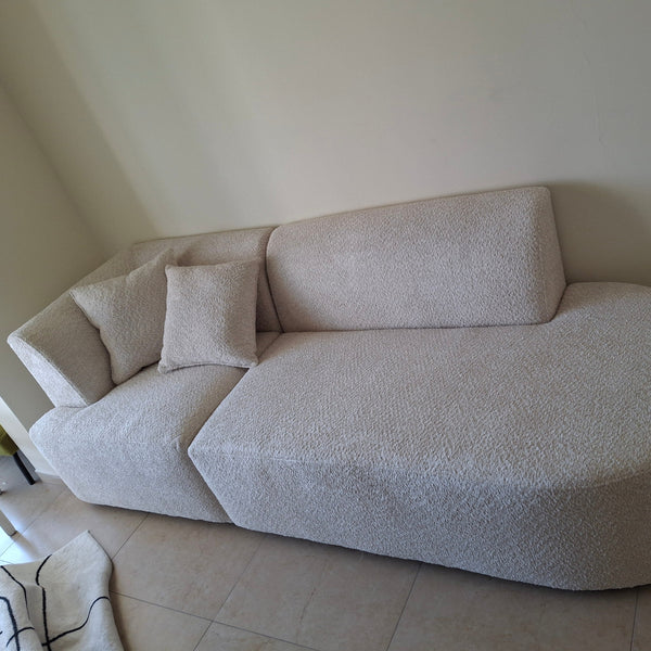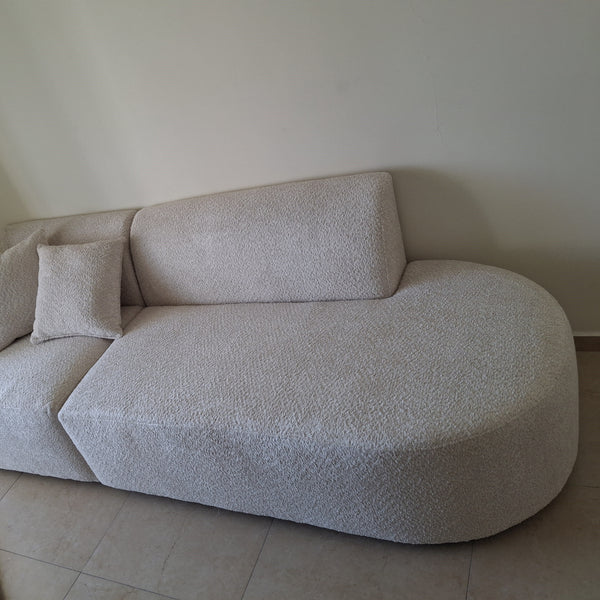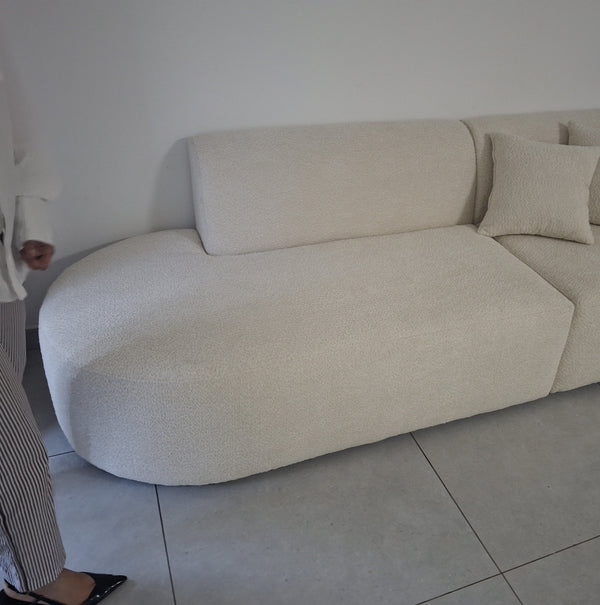 ספה עם שזלונג מעוגלת לסלון מרופדת בבד בוקלה