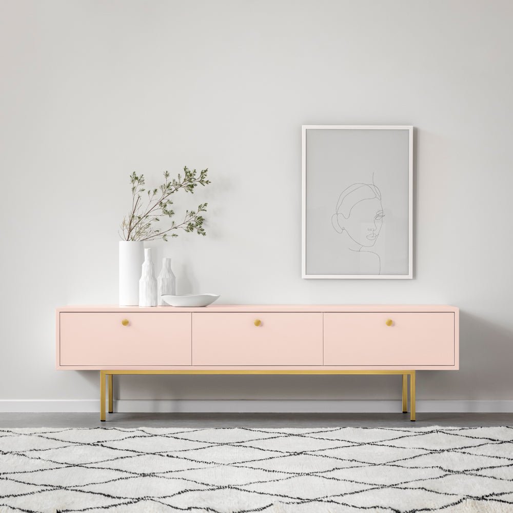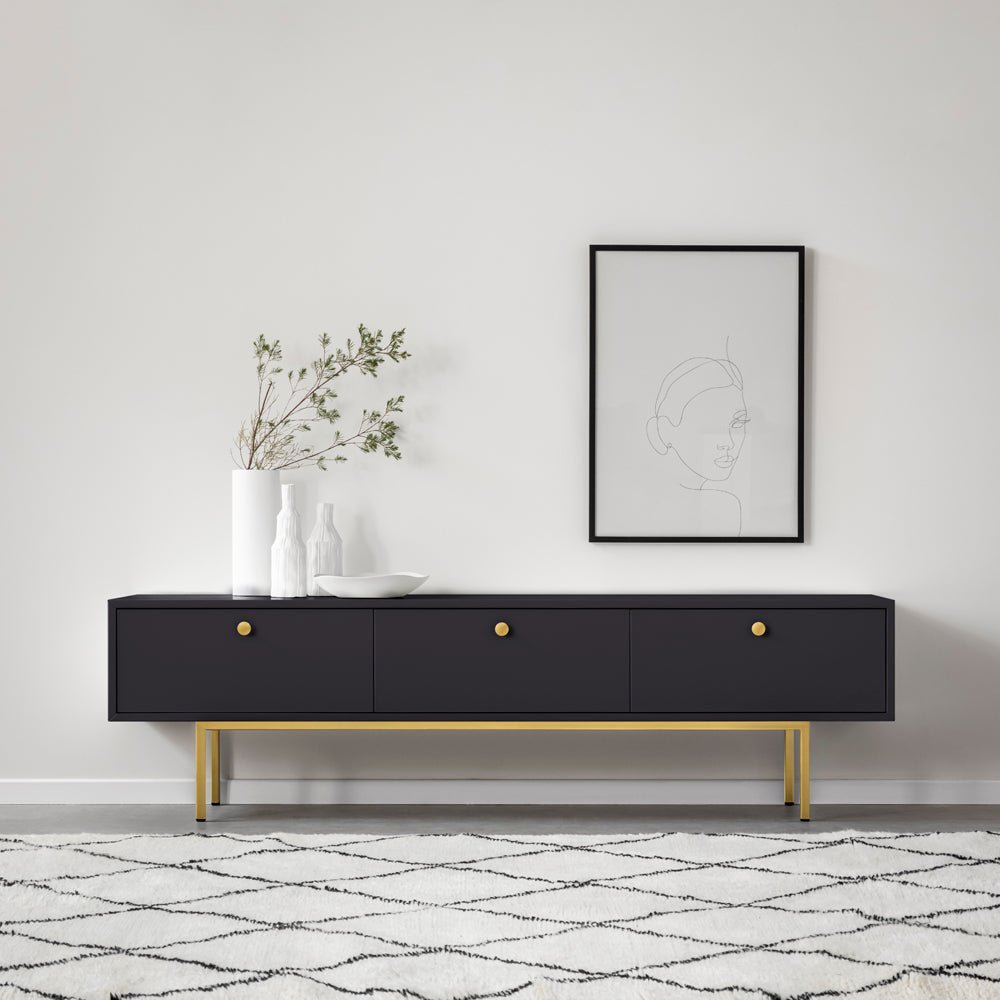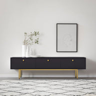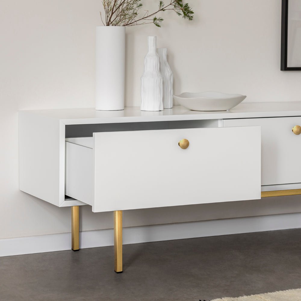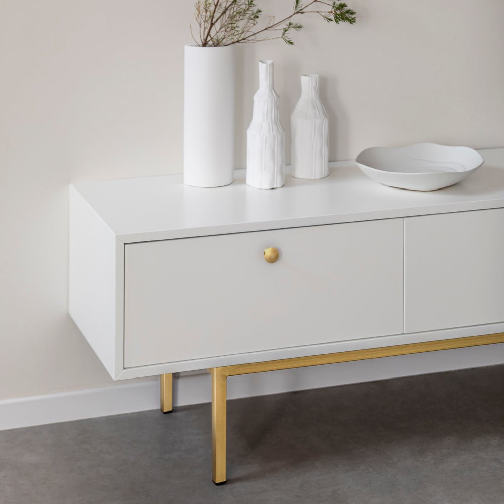 מזנון מהמם שאף פעם לא יוצא מהאופנה מדגם גרוב, עשוי עץ תעשייתי צבוע בתנור, במגוון צבעים לבחירה ובמרקם חלק. 3 מגירות איחסון גדולות ורחבות הנעות על מסילות טריקה שקטה ולהן ידית כפתור מוזהבת מברזל. רגלי המזנון עשויות ברזל מגולוון צבוע בתנור בגוון זהב.
