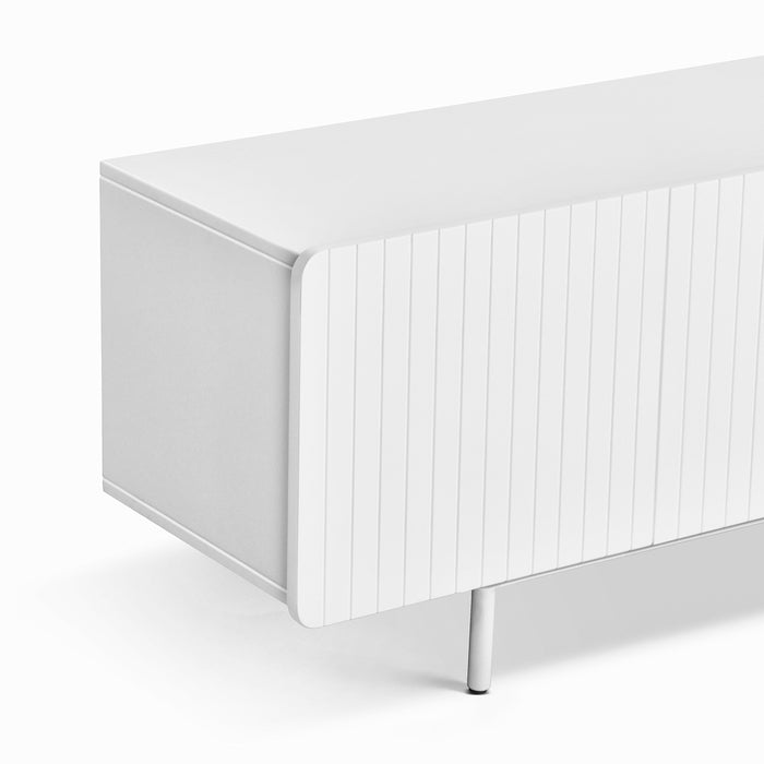 מודרניזציה במיטבה: מזנון בגוון לבן מט צבוע בתנור עם חיתוכי CNC דקוראטיביים, בעל 2 מגירות הנעות על מסילות טריקה שקטה. ודאגנו גם לא לוותר על יחידת איחסון עם 3 דלתות הנפתחת באמצעות מגרעות פנים המזנון מחופה פורמיקה שחורה והוא מונח על רגלי ברזל מגולוון.