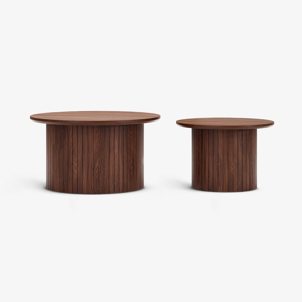 סט שולחנות סלון עגולים מעץ, קוטר 58 ו-88 ס"מ