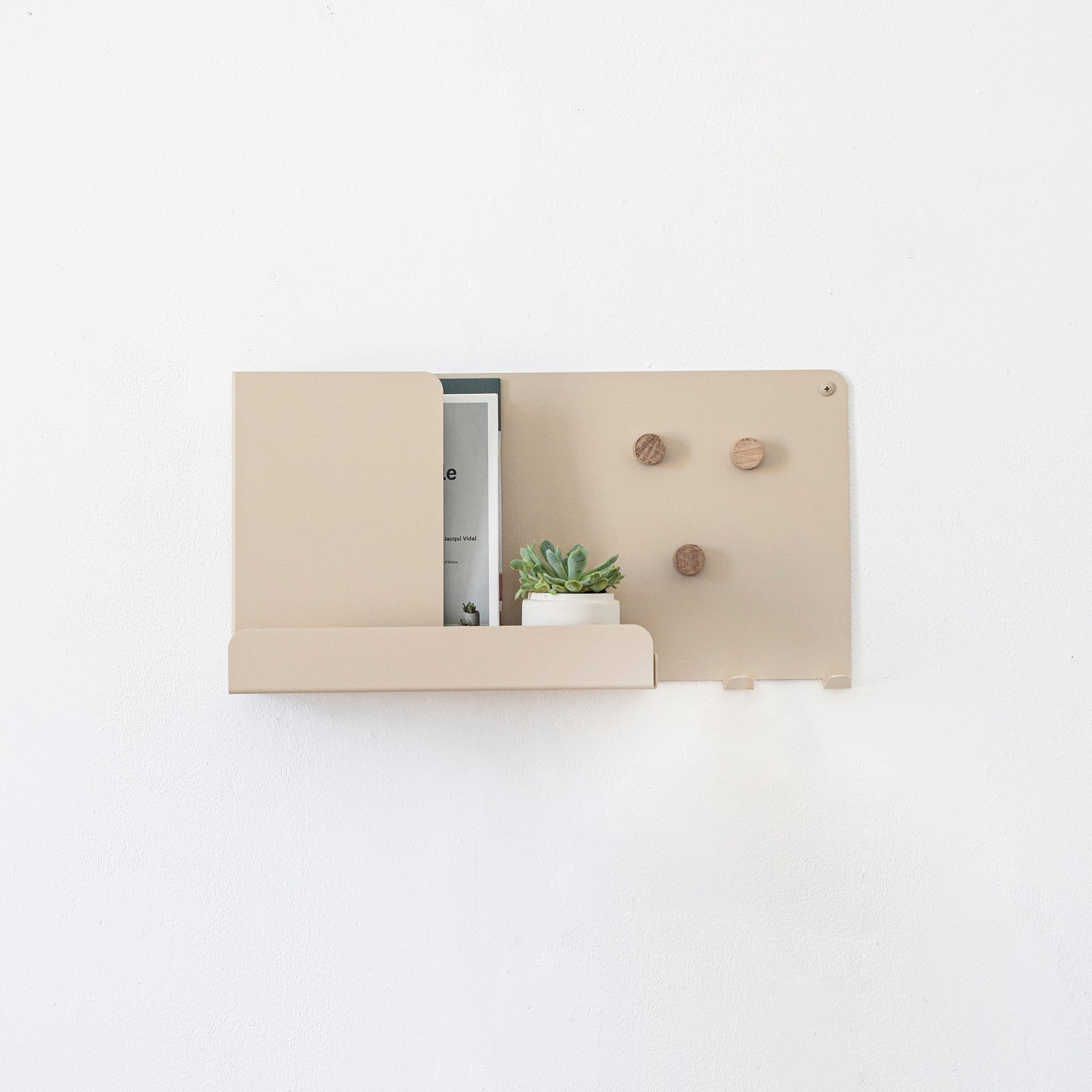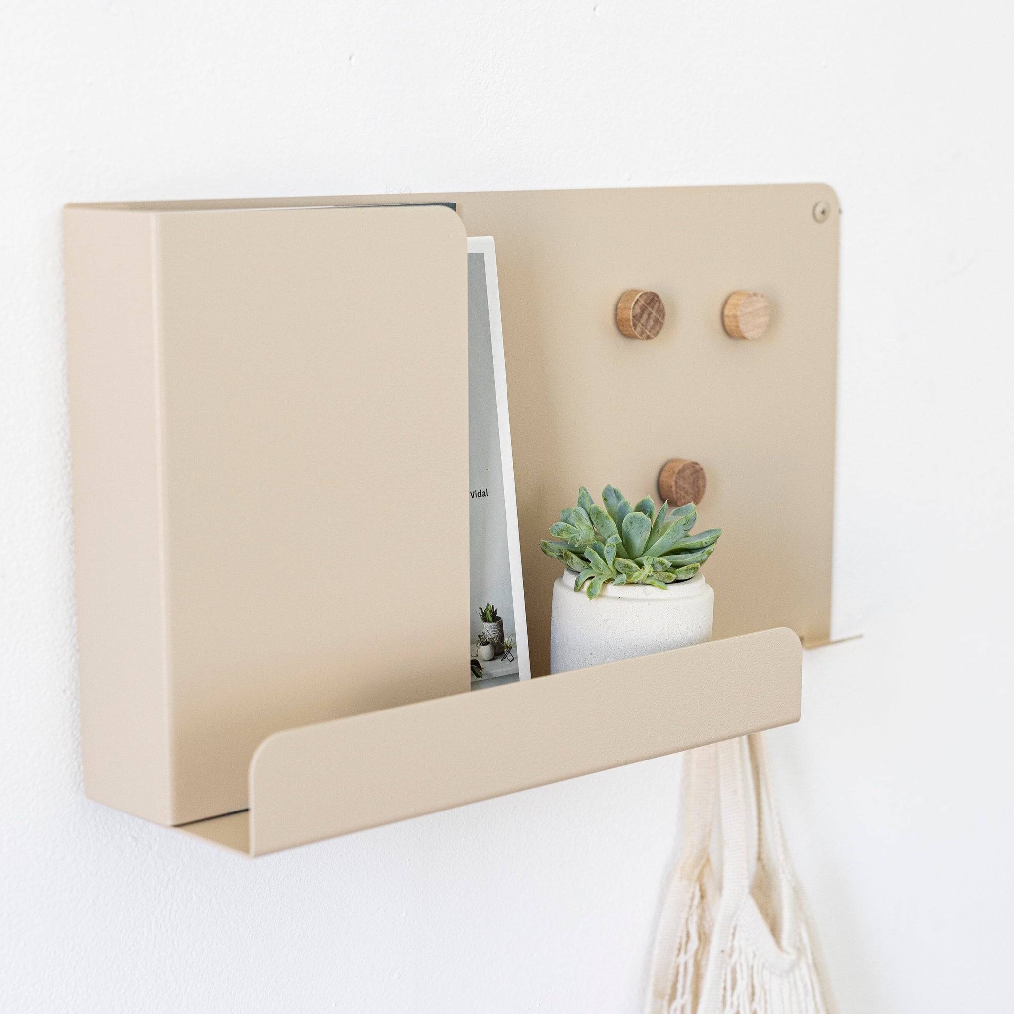 מדף מגנטי מעוצב, שילוב מושלם של פונקציונליות ועיצוב מינימליסטי מודרני. המדף כולל אזור לוח מגנטי לתזכורות ופתקים, מדף צף נוח לאחסון ושלושה מתלים לשימוש יומיומי. עשוי ברזל בעיצוב נקי ודק המשלב עמידות עם אסתטיקה גבוהה. כולל שלושה מגנטים עגולים מעץ אלון טבעי ושני מתלים. אידיאלי למטבח, הכניסה לבית, משרד או חדר שינה – ליד המיטה. משתלב בקלות בכל סגנון עיצוב.