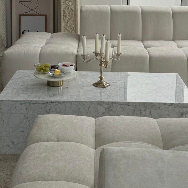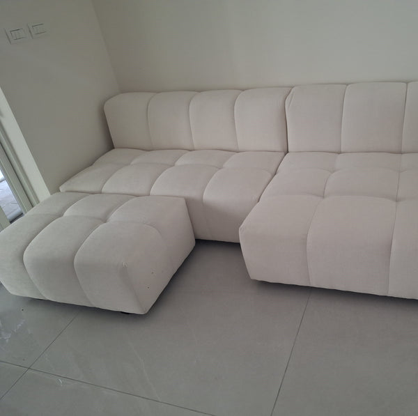 ספה פינתית מעוצבת עם תיפורי ריבועים