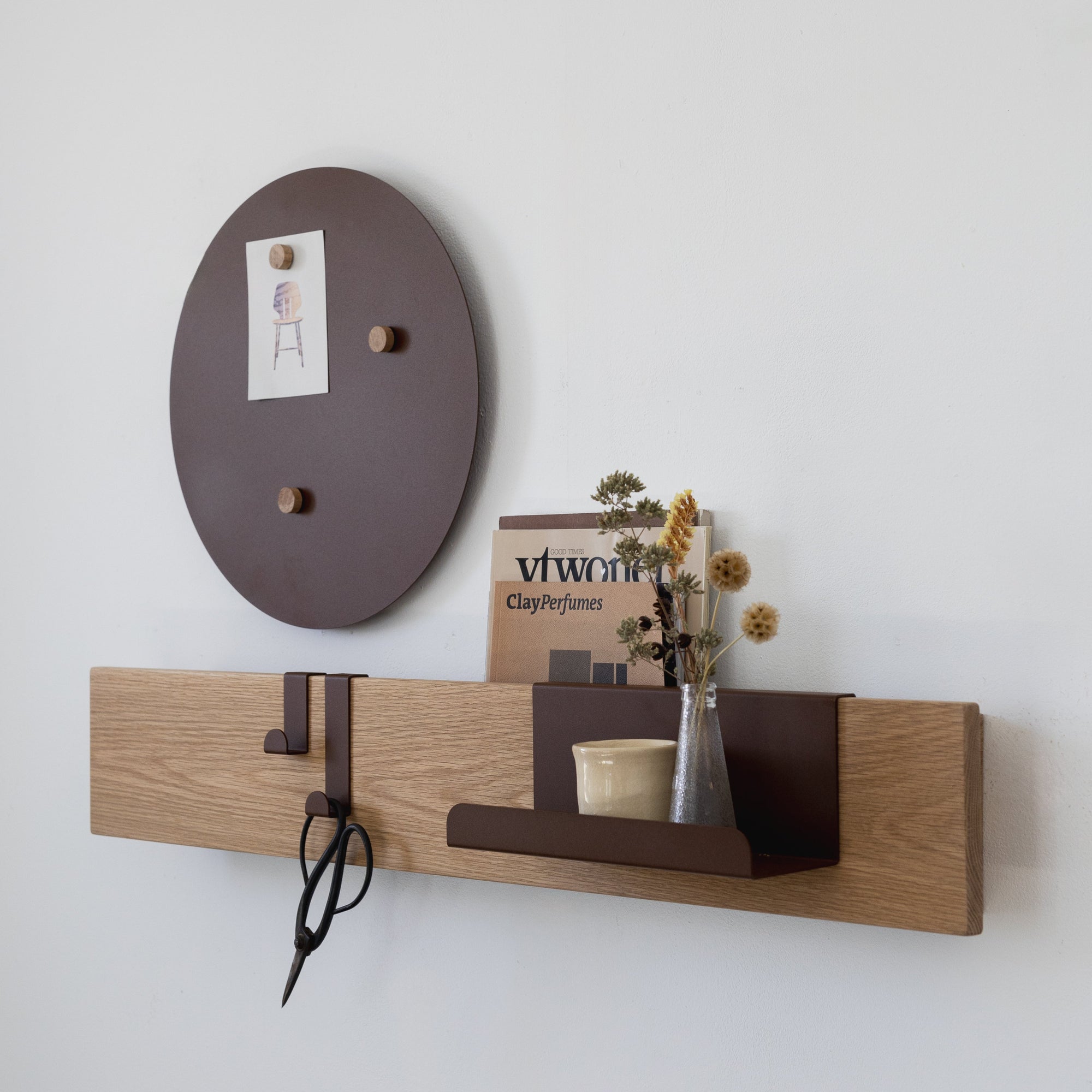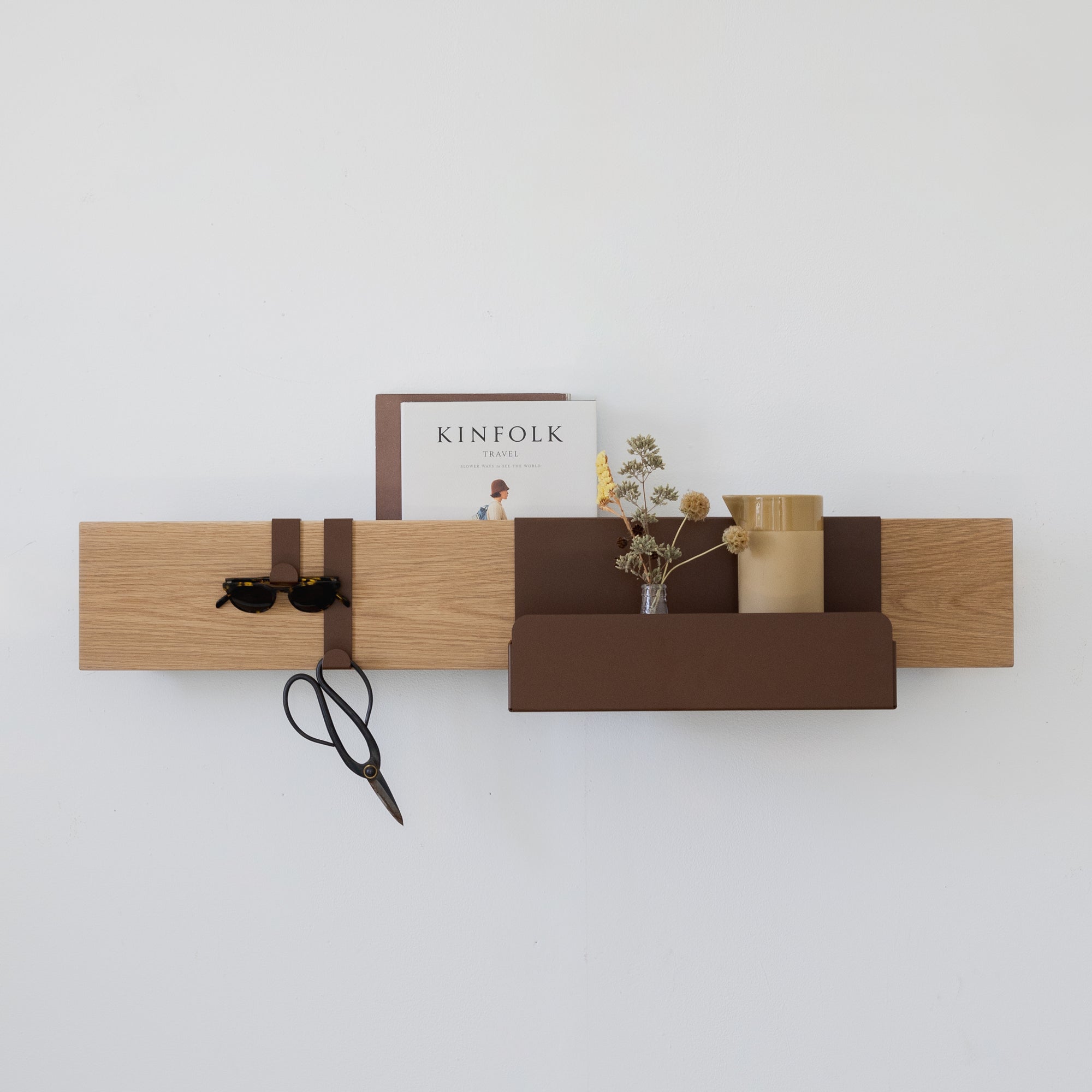 מדף LYNNE הוא מדף צף בעיצוב אלגנטי המשלב חזית עץ אלון מלא עם תיבת מתכת נסתרת – פתרון מושלם לאחסון של ספרים, מסמכים או חפצים קטנים. כולל מדף מתכת קטן ושני מתלים. קו העיצוב הנקי והמדויק מאפשר שילוב המדף בחדר שינה, פינת עבודה או בכניסה לבית.