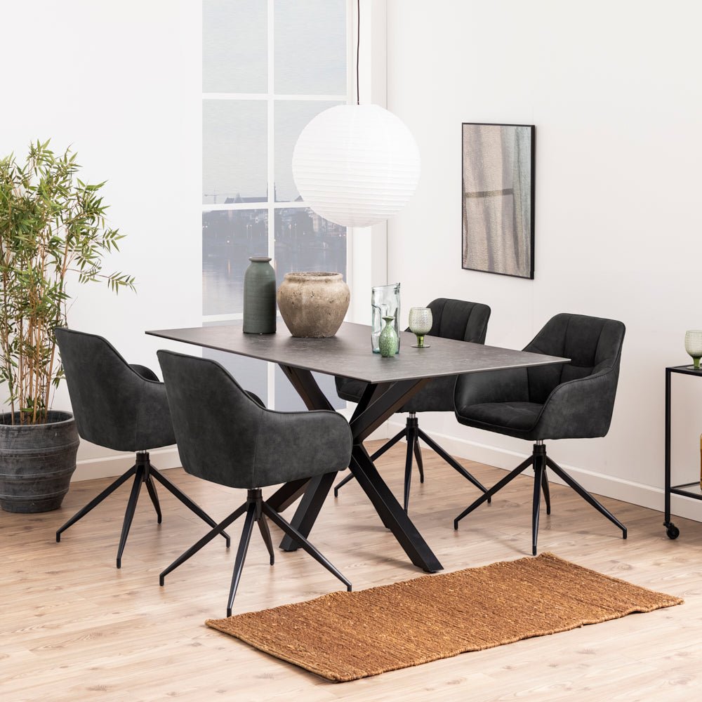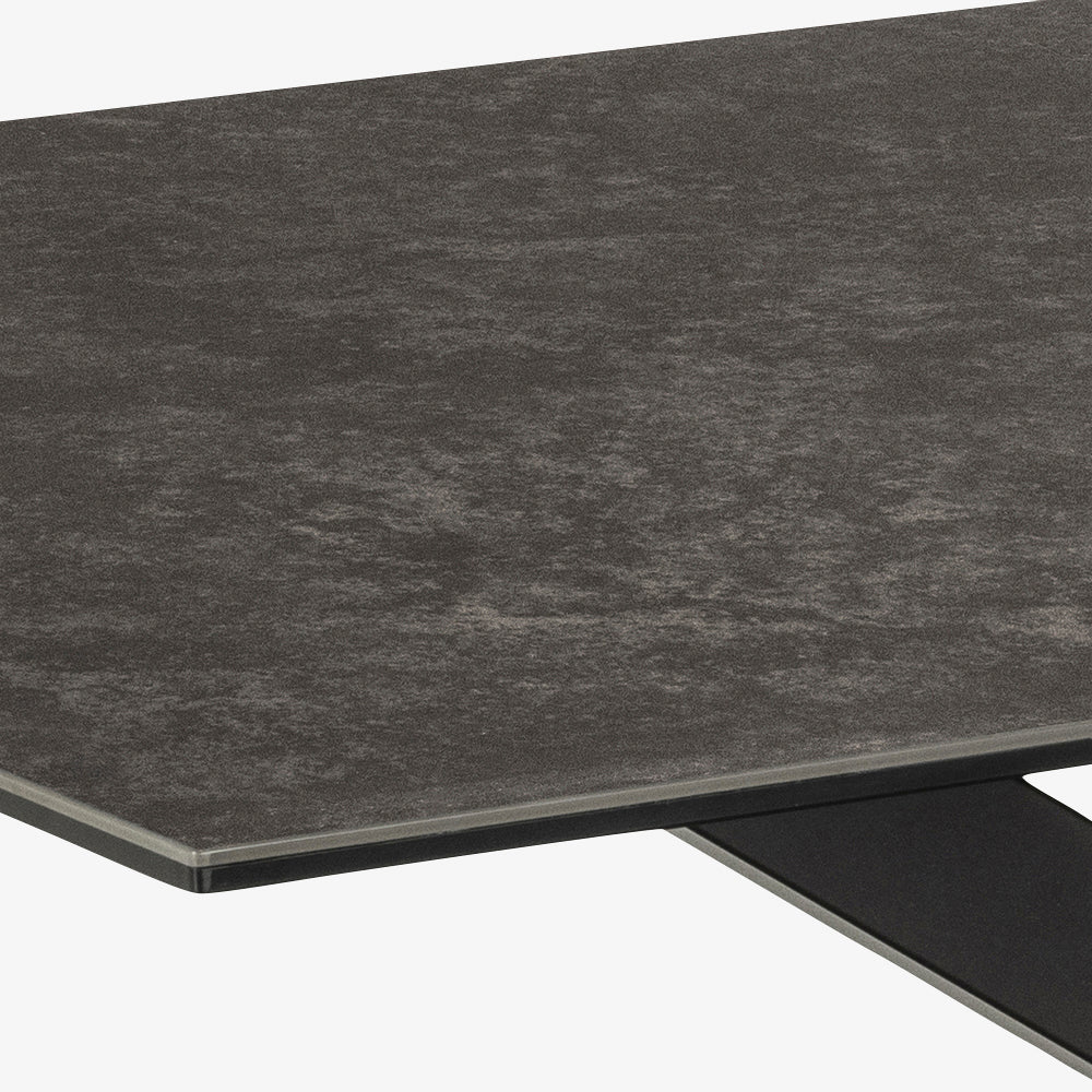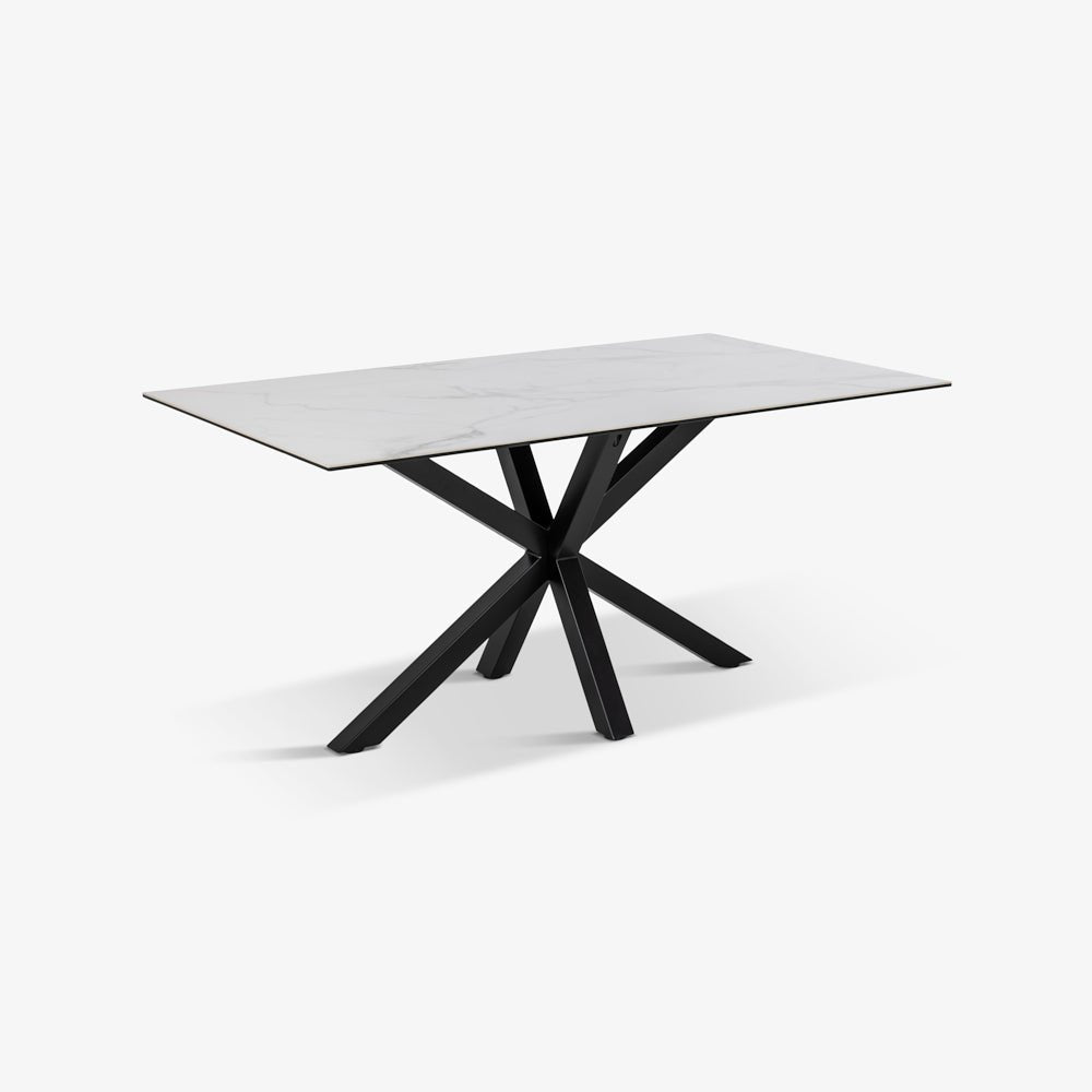 שולחן פינת אוכל מלבני ומהמם מדגם מארץ' עשוי פלטת קרמיקה דמויית בטון או שיש. בסיס השולחן עשוי ברזל מגולוון איכותי צבועה בגוון שחור. השולחן אינו נפתח אבל כך או אחרת הוא פיס היסטרי לפינת האוכל שלכם. יכול להכיל עד 8 סועדים.