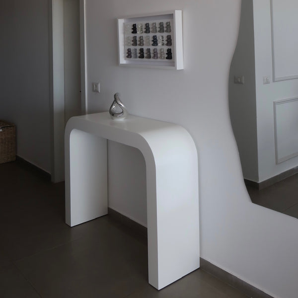 קונסולה ממלמין ומתכת, עם מדף עליון