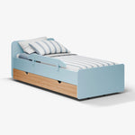מיטת ילדים מעץ עם מגירות אחסון ומיטת חבר
