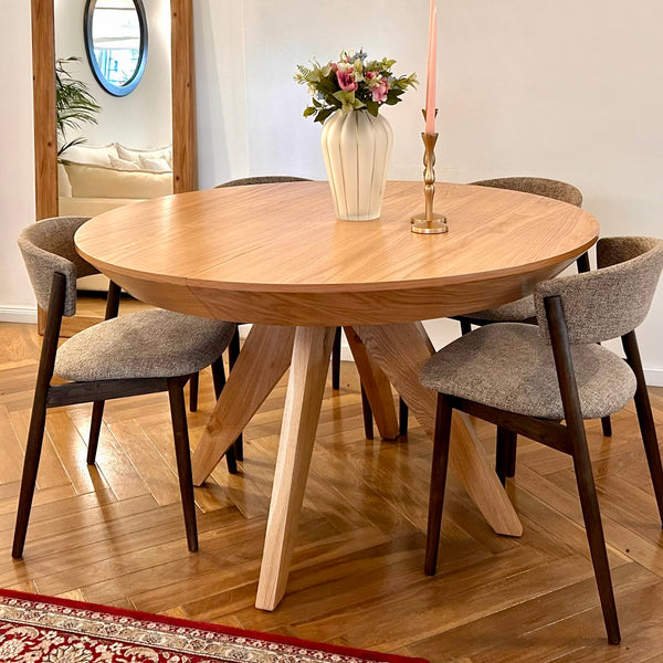 שולחן אוכל עגול קוטר 120 ס"מ, נפתח ל-170 ס"מ עד 8 סועדים