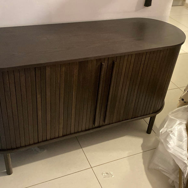 שידת אחסון מעץ, עם מדפים סגורים ומגירה