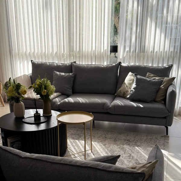 SALMER | ספה אפורה נורדית לסלון בבד אריג רחיץ