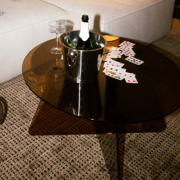 שולחן סלון עגול בעיצוב אלגנטי ומודרני מדגם סייה, עשוי זכוכית מחוסמת איכותית בגוון חום, שקוף או אפור. בעל מבנה יציב עם בסיס דקורטיבי בעיצוב גיאומטרי ייחודי המוסיף עומק ועניין לחלל. השולחן משלב שקיפות ואלמנטים חמימים ליצירת מראה יוקרתי ונקי, מושלם לחללי סלון מודרניים או קלאסיים כאחד.