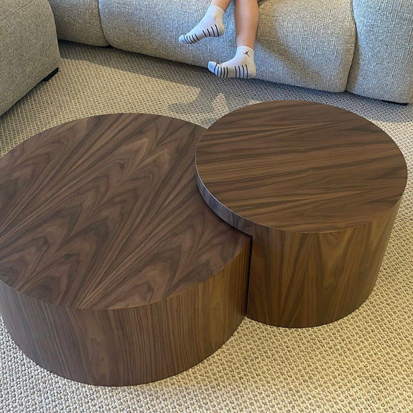 סט שולחנות סלון עגולים מעץ, קוטר 58 ו-88 ס"מ