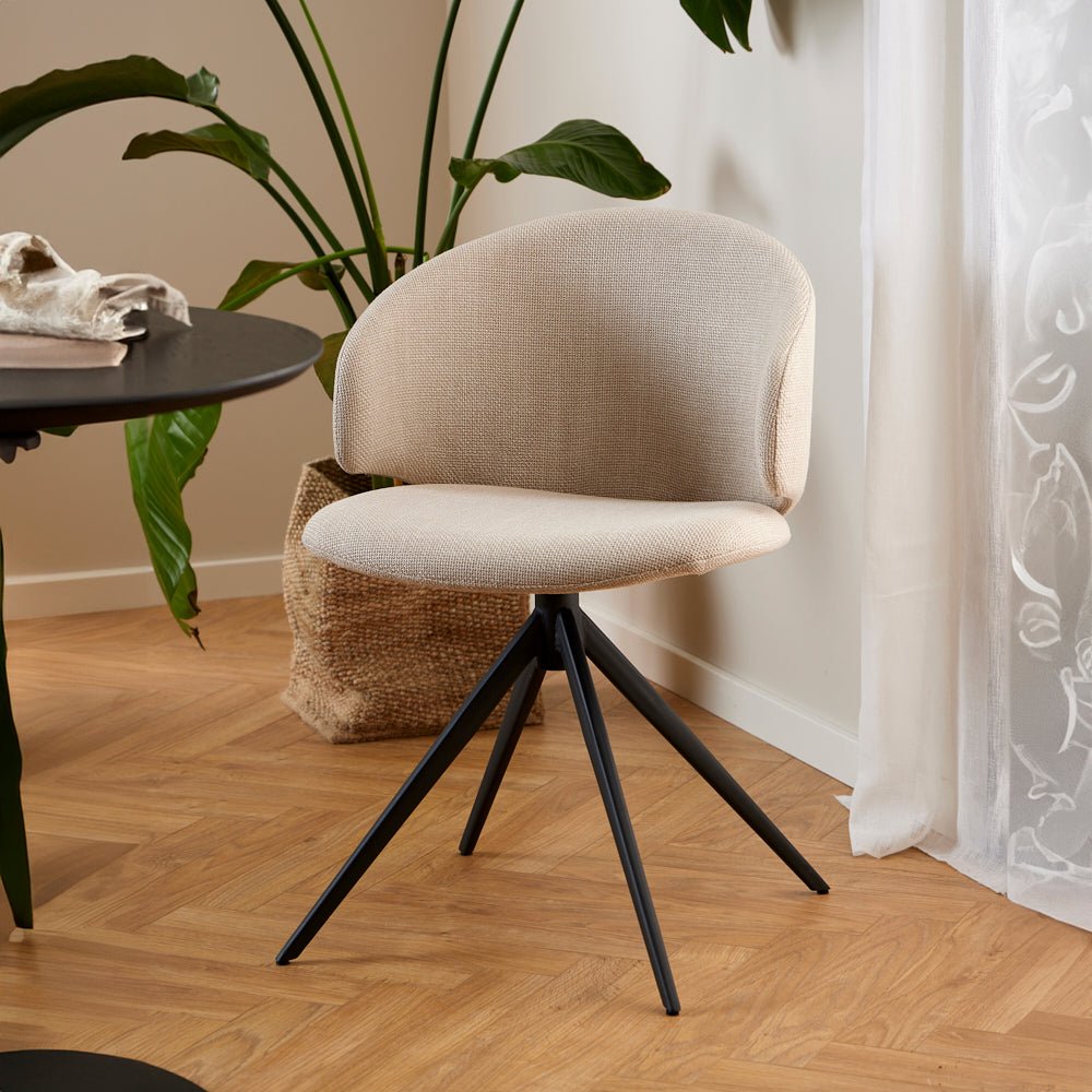 כיסא נורדי מרופד בבד אריג בגוון חול