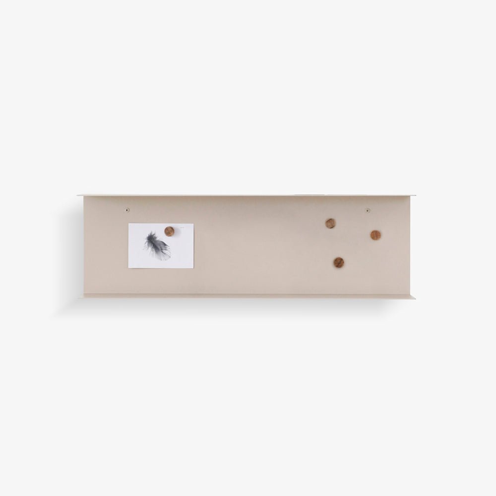 מדף H משלב מדף מתכת עם לוח מגנטי ומתלה עץ אלון, ליצירת פתרון עיצובי ופונקציונלי בחלל. כיפוף מדויק של המתכת יוצר מדף עליון ומדף תחתון, כשביניהם אזור לוח מגנטי לתליית פתקים או תמונות באמצעות מגנטים מעץ אלון. עטוף כולו בעיצוב מינימליסטי ונקי. זמין בשני צבעים - פחם או חול, ומתאים במיוחד למטבח, לחדר עבודה, לחדרי ילדים או כפינה דקורטיבית ומאורגנת בכל חלל. הבחירה המושלמת לעיצוב הבית.