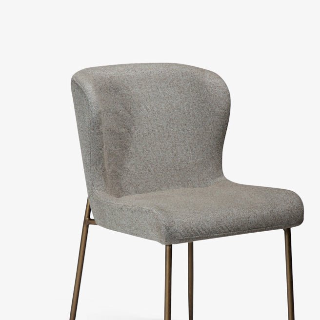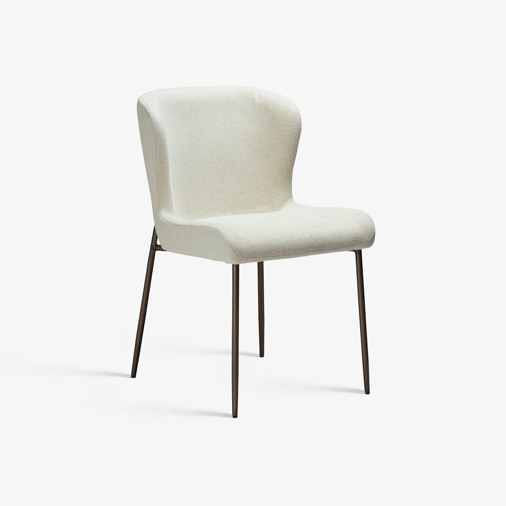 כיסא מהמם מדגם זנטרה המשדר אלגנטיות ומעוצב בקווים מעודנים ומחבקים. מרופד בבד בוקלה בגווני בז' או שמנת ויושב על רגליים דקות בעלות עיצוב מחודד בעדינות בגוון תואם. רגליו האחוריות המוארכות עד משענת הכיסא יוצרות מראה מרשים המדגיש את תחושת היוקרה.